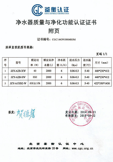 凈水器質量與凈化功能