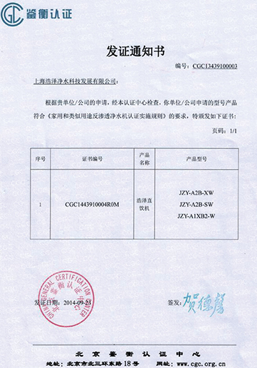 凈水器產品認證